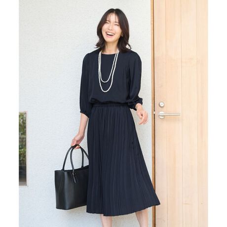 上品かつ繊細な印象に仕上がるプリーツワンピースPOINT●上品な素材感●フォーマルシーンにぴったりな1枚●甘くなりすぎないプリーツ●手洗い可能■デザイン歩くたびにふんわり揺れるプリーツが華やかさを演出してくれる女性らしいワンピースです。裾が広がりすぎない落ち着いたシルエットなので、どんな着丈のジャケットやコートにも合わやすいのがポイント。シンプルながらに着るだけで華やぎ、迷わずコーディネートが完成するキレイめワンピースです。■素材上品な光沢が特徴のサテン素材を使用しております。あえて自然なしわ感を出すワッシャー加工を施しているので、普段のキレイめコーディネートにも着回せます。同素材でスカート(品番:SKFXNZ0100)の展開もございます。