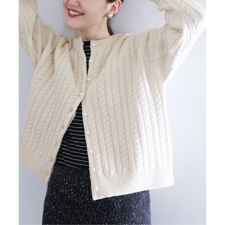 今年も引き続きトレンドのケーブル編みのカーディガン。