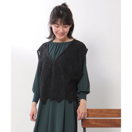 これからの季節のレイヤードスタイルで活躍するレース仕様のベスト。