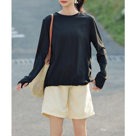 二の腕は勿論、腰まわりも隠れる丈感で体型を上手にカバー。