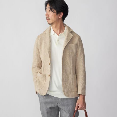 ざっくりとしたヘリンボーンジャカードによるリラックス感がポイントの2ボタンジャケット。