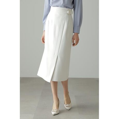 ◆バックルアクセントミモレ丈タイトスカート