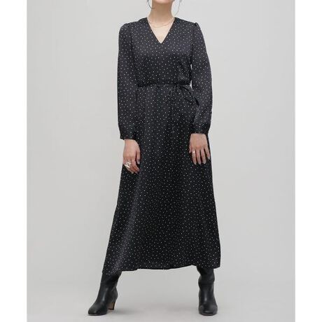 一枚でサマになるフェミニンなドットワンピース。ダーツや切替を入れて細見えするすっきりとしたシルエットを実現。更にウエストはリボンでマークするとよりスタイルアップ。縦長のVネックでアクセサリー映えも確実。デイリー使いはもちろん、クリスマスやシーズンイベントなど特別なシーンにもおススメの1着です。
