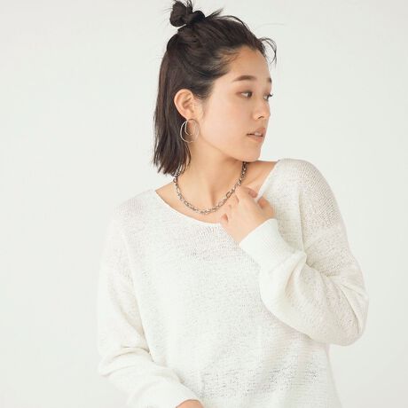 ・一枚で着れる浅めのVネックと、鎖骨が覗くボートネックの両前着用可能な2WAY仕様