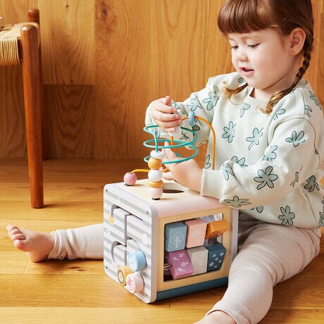 ルーピング、数字とイラストの絵合わせ、歯車、型はめ、迷路など、指先を使った遊びがたくさん!