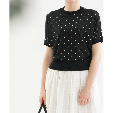 ・レーヨン混のさらっときれいめな糸を使った、ドット柄のジャガードニット。