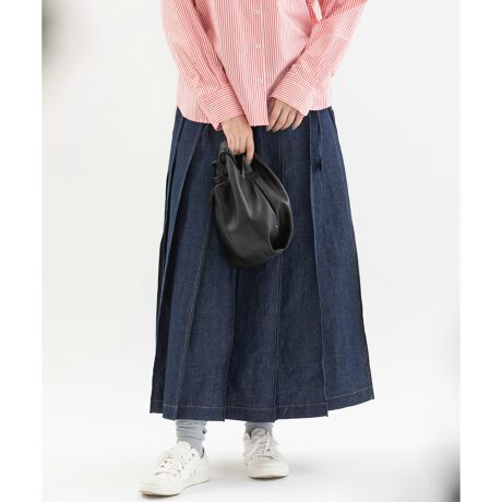 ・太めのひだのひとつひとつに丁寧にステッチをかけたプリーツ風のスカート。