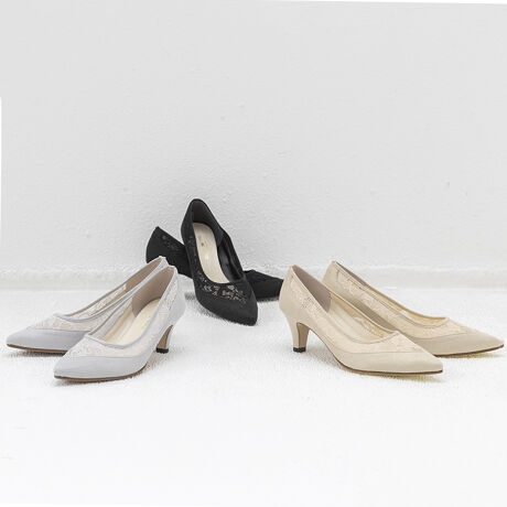 ≪価値観のあるレース≫と≪ポインテッドトゥ≫がポイントのパンプス。