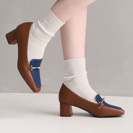 ・スクエアトゥ×ブロックヒールで甘くなりすぎない上品フォルム。