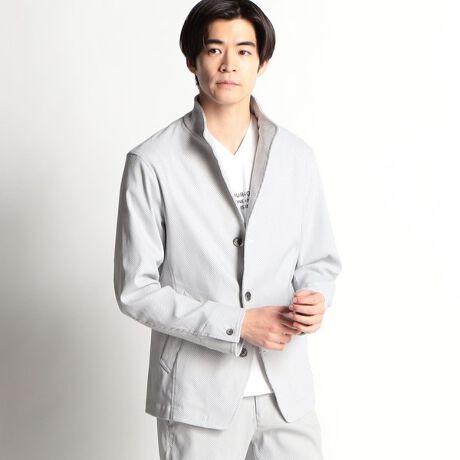 吸湿性の高い再生繊維のレーヨン糸とプリッとしたコシを出すナイロンを使用した先染めのハイパーストレッチ素材を採用。スタンドカラーのカバーオールジャケットを展開します。しっかりとしたハリがありながらポリウレタン混による良く伸びるストレッチ性とキックバックが利いた素材感、合繊特有の上品な光沢感が特長。タテヨコの糸の色を配色にする事で色合いに奥行を出しているのも魅力の素材です。サラッと羽織れるシンプルな仕様で、衿端にはワイヤーを入れて着こなしのアレンジができる様にしております。