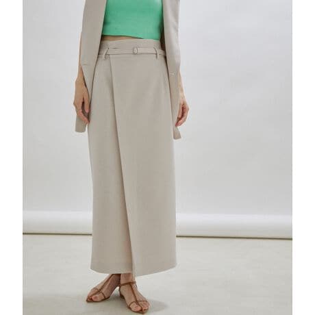 【スタイルアップ効果抜群!ラップ風シルエットとスリットが女性らしい印象のロングタイトスカート】