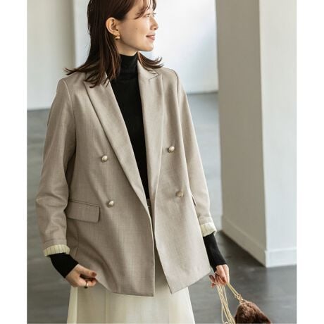 メンズライクでトラッドな印象のダブルジャケットを、女性らしさを引き立てるシルエットにこだわって仕上げたジャケット。