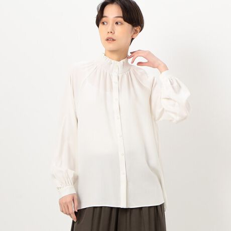 台襟をシャーリングで仕立てたシャーリングブラウスです。