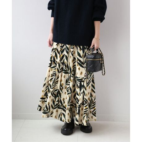 華やかで上品なプリントスカートは秋の装いを始めるのにぴったりなアイテム。