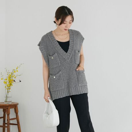 ツイード風ニットベスト