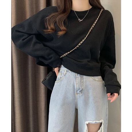 程良く華奢魅せできる丈感のスウェットトップス