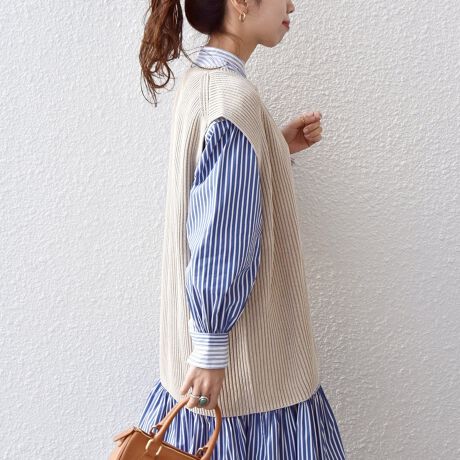 軽やかに春のレイヤードコーデを楽しめるベスト。