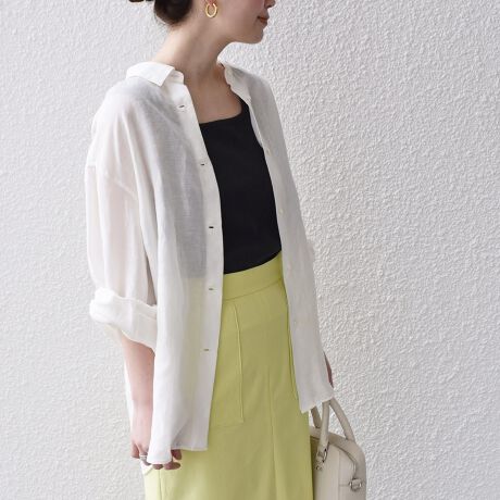 陽射し強くなるこれからの季節に羽織れるシャツを探していました。リネンのさらっとした着心地、きれいなイエローとても気に入ってます。