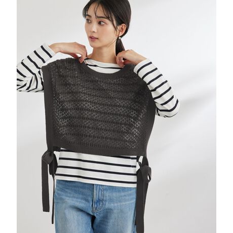 ・軽やかな透かし編みデザインのニットベスト。