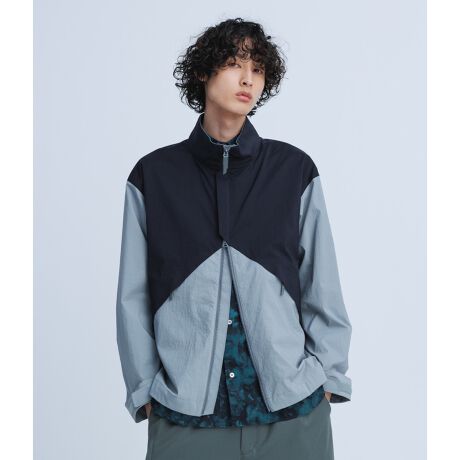 上品な風合いのしわ加工が施された軽量はっ水ナイロンストレッチ素材を使用したウィンドブレーカー。