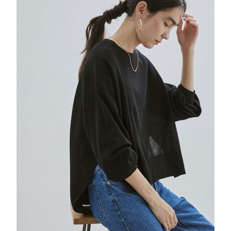 前後差のある着丈とサイドスリットがポイントのクルーネックプルオーバー。