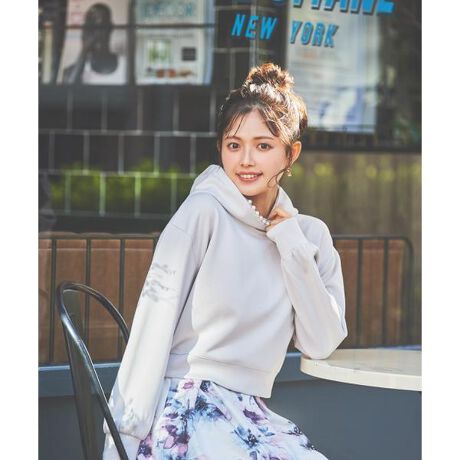 【商品特徴】アシンメトリーにパールパーツを取り入れたショート丈のパーカーです。フード部分に映えるパールパーツがエレガントな印象に。大人カジュアルなアイテムですが、春らしい色味とさらっと着やすいキレイめなカットソーを使用しているので上品に着こなせます。【スタイリング】レースやマーメイドスカートなどの、フェミニンなアイテムとのMIXスタイルがオススメです。