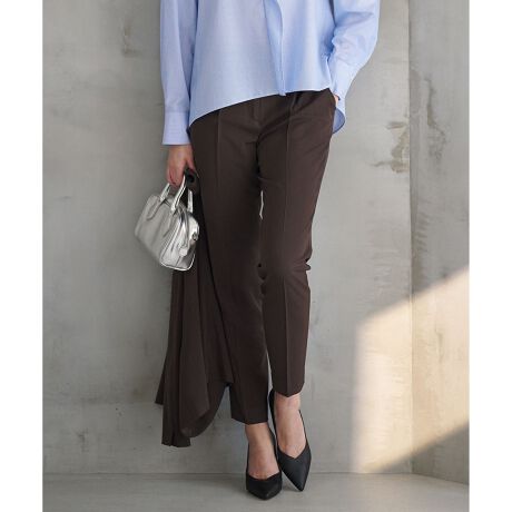 Point 03 着回し力の高さ同素材のテーラードジャケットやノーカラージャケット、ブラウスとのセットアップでお仕事やセレモニーで活躍すること間違いなし。単品でもシャツやニットと合わせてOFF使いもできる着回し力が本当に高い美脚パンツ。トップスをINしてもウエスト周りと腰回りが綺麗に見えるデザインなのでよりスタイルアップして見えます。