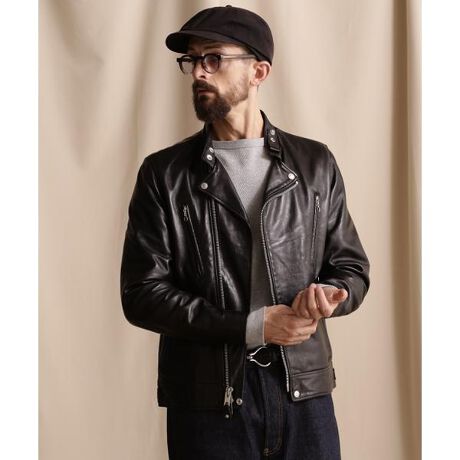 30年代〜40年代フライトジャケットからライダースジャケット移り変わっていく時代にインスパイアし、ダブルブレストライダース。