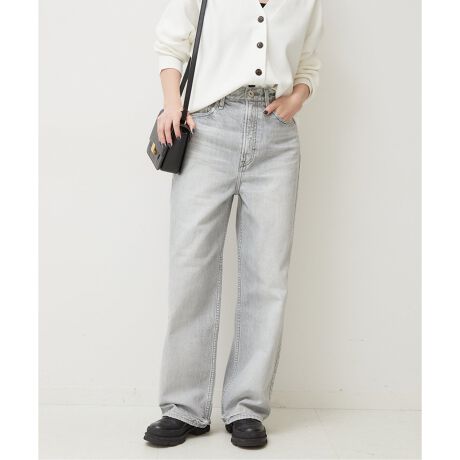 ウエスト周りはすっきりとさせたハイライズ、膝や裾は大きく取ったワイドストレートデニム。