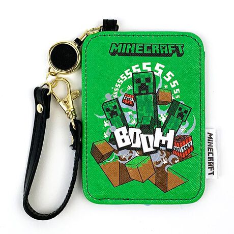 マインクラフト Minecraft クリーパー リール付きパスケース 定期入れ 通勤通学 グリーン