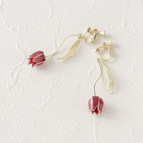 チューリップモチーフの華やかな可愛らしいデザインのイヤリング。色合いがカラフルなのも可愛らしく、コーディネートのアクセントになります。