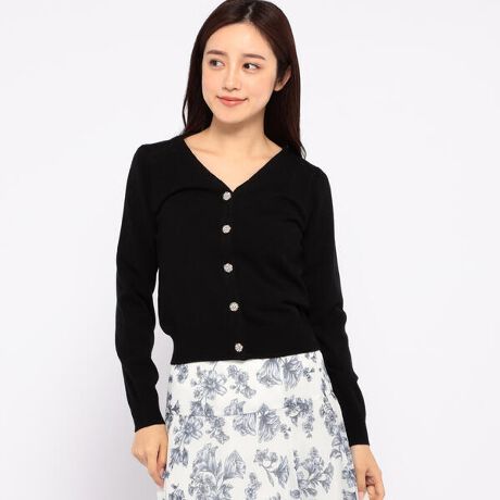 ビジュー釦天竺Vネックカーディガン