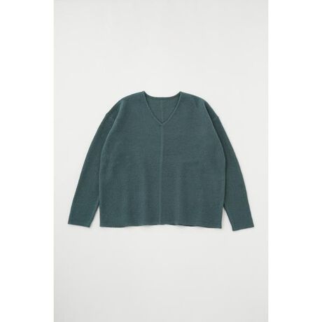 M_(エムアンダーバー)【M_LOOSE KNIT PULLOVER】シンプルなVネックのニットプルオーバー。長めの袖と、肩に添うよう計算されたルージーなシルエットがポイントです。袖口は折り返すとカフスデザインのアクセントに。裏表を返して表情を変えて着られるリバーシブル仕様です。素材にはノンミュールジングウールを使用。ウールならではの優れた保温性で暖かく、室内でのリラックスウエアとしてもおすすめです。