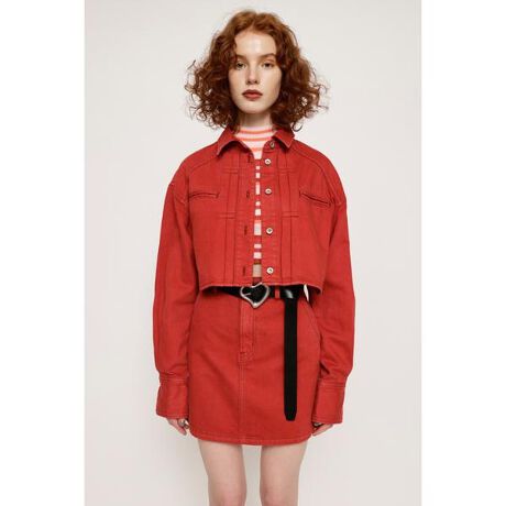 【LIGHTONS CROP COLOR DENIM JK-E】■POINT:程よいムラ感で深みのあるレッドカラーが目を惹く今季トレンドのクロップジャケット。ライトオンスの素材を採用し、軽くて柔らかい風合いに仕上げたことで快適な着心地を実現。■DETAIL:ヴィンテージの2ndのGジャンのような本格的なタックディテールを前後に取り入れ、あえて微配色のブラウンステッチにしたことでヴィンテージショップにありそうな表情に仕上げました。シャツのように軽さのあるヘムラウンドデザインもポイントに。■STYLING:マニッシュボトムやワンピースなどに羽織ったり、同シリーズのパンツ(030GSY11-0170)やミニスカート(030GSI11-0550)とのセットアップコーデがおすすめ。■FABRIC/MATERIAL:製品染めの程よいムラ感が雰囲気のある表情に。ライトオンスの素材を使用したことで今の時期から春先まで長く使えるアイテムです。※当初よりシワやゆがみ、毛羽立ち、色ムラ、サイズムラが生じている事があります。洗濯につれて徐々に色あせや色ムラが生じる事があります。色落ちしやすいので白・淡色との組み合わせはお避け下さい。