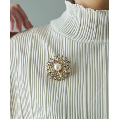 niana ニアナ 大粒パールを中心にビジューが並んだ、雪の結晶のようなデザインのブローチ。