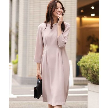 セレモニーなどのきちんとしたシーンにも好印象の膝が見えない着丈は座ったときも安心。ジャケットやコートとも相性良く着合わせられます。シンプルなデザインなので、ネックレスやブローチなど、お手持ちのアイテムで華やかさをUPさせても素敵に決まります。