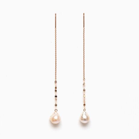 パールのひとつひとつに個性があるピンクゴールドアメリカンピアス。