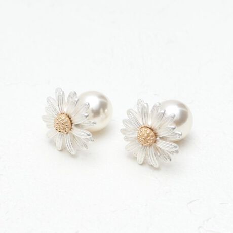 [型番:C5936006]大人かわいいお花ピアス【デザイン】メタルの花モチーフが印象的なピアス。甘すぎず、大人が使えるアイテムです。フェイクパールをキャッチにしているのもデザインポイントに。