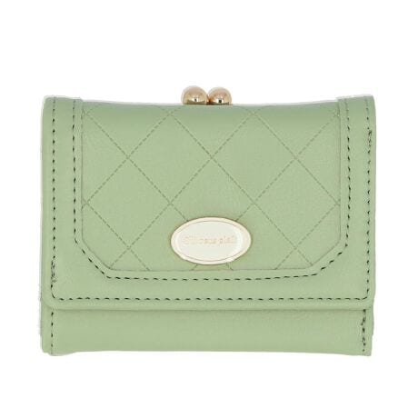 フラップの小さなモチーフが可愛らしいアクセント♪手のひらサイズで使いやすい「がま口折り財布」が新登場。スナップボタン式のフラップを開くと、内側に3つ折りタイプのシンプルな札入れスペースが1つ。札入れスペース正面には、クレジットカードなど厳選したカード類を4枚収納できるカードポケットを4か所設け、キャッシュレス派女子にも嬉しいつくり。コインスペースは、丸いゴールド色の金具が可愛いレトロながま口タイプ。ボックスマチ仕上げなので、中の小銭がひと目で確認でき、お会計時の取り出しもスムーズ。お財布背面側のオープンポケットにICカードを収納しておけば、駅の改札やバス乗車時もワンタッチで楽々スルー。柔らかな質感のフェイクレザーに、エレガントなモチーフを控え目に配置。ちょこんと座ったゴールドのテディベアが可愛い「くま」、ぷっくりとしたエポキシ樹脂加工が印象的な「プードルエポ」「お花エポ」など、バラエティに富んだモチーフデザインが魅力。