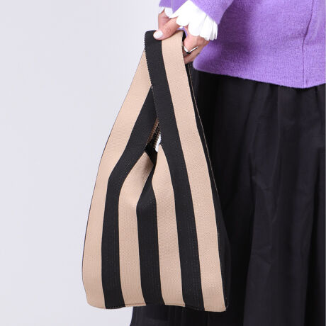 2way ショルダー付き ストライプニットマルシェトートバッグ