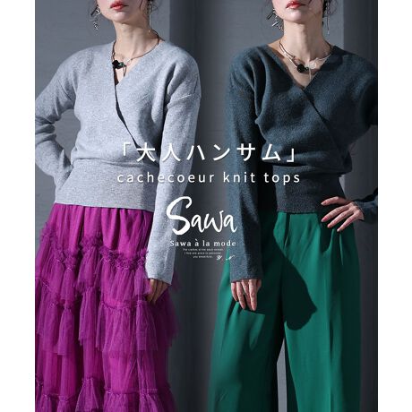 カシュクールのデザインがオシャレで女性らしい短め丈のニットが登場。首元の開きも開きすぎず程よい肌見せ効果で華奢に見せてくれます◎裾はリブ仕様になっておりウエストのカバーにもバッチリ。一枚でも中にインナーを合わせていただいてもどちらでもとってもオシャレに見せてくれます☆