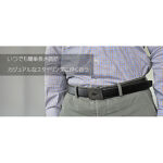 [型番:LB84885]レバーを押しながら、ベルトを好きな所までスライドさせ、レバーを離すだけで留まります。着脱やサイズ調整がとても簡単。 ウエストサイズがかわった時、食事の後など、いつでもスライドして簡単に調節が可能です。