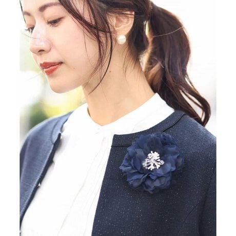 シフォンのやわらかさに、中央のビジューやパールが華やかさを演出してくれるコサージュ。存在感がありながらも女性らしいコサージュは式典や行事ごとにぴったり。留める部分はクリップとピンの2way仕様になっているので、お洋服に穴を開けずに付けられるのも嬉しい。