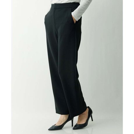ワイド過ぎず、ほどよいゆとり感のあるストレートパンツ。二重織りのコシのある素材感は身体に張り付かず綺麗なシルエットが出ます。お仕事やお食事のシーンにも対応できる、エレガントな見え方が叶うパンツです。