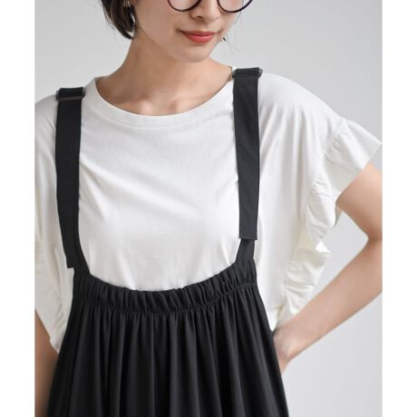 ゆったりしていて二の腕もカバー出来て、着心地がいいです。脇部分が開き過ぎてないのも良かったです。フリルがかわいいです。