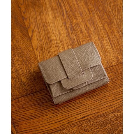 3つ折りになったミニレザーウォレット。