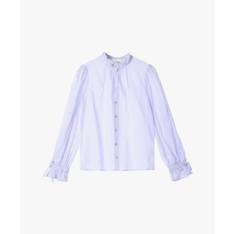 台衿フリルと可愛くふくらんだ袖口がクラシックなレトロな長袖ブラウス。