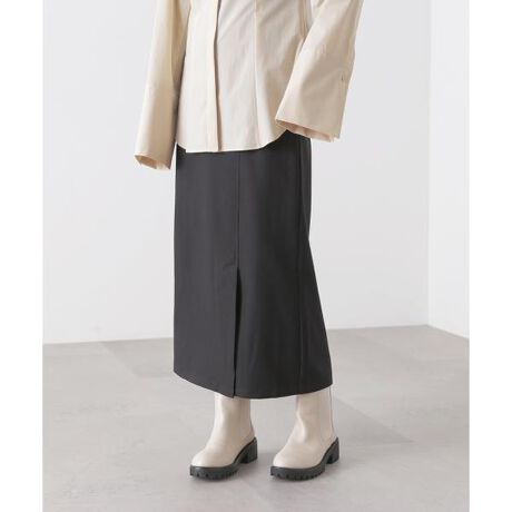 スタイリッシュな雰囲気ただようロングスカート。縦ラインをスッキリ見せるロング丈に、サイドスリットいれ足さばき良好。ハイウエストデザインでお腹まわりをコンパクトにまとめ、ウエスト後ろはゴム仕様、脇ファスナーではき心地良く仕上げています。キレイめブラウスをINして通勤オフィススタイルにも、ゆるニットをOUTしてカジュアルな雰囲気にも着回しできます。※オフカラーのみひざ下丈の裏地付きです。