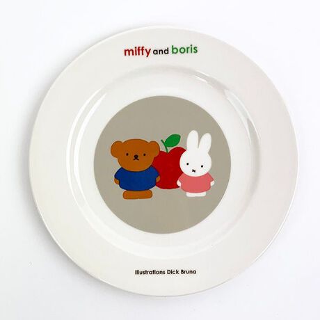 落ち着いたカラーにリンゴのアクセントがかわいい♪大人気「miffy and boris」シリーズの使いやすいサイズのプレートです。◆電子レンジ、食洗機OK