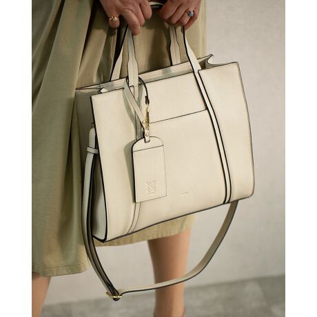 スクエア型のすっきりとしたシルエットが、きちんと感重視の通勤スタイルにもマッチしエレガントに決まります。